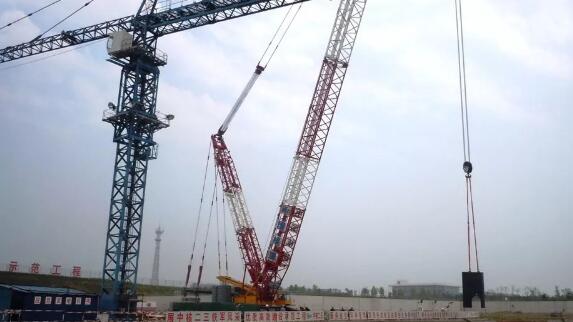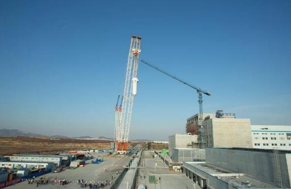 中核機(jī)械采用3200噸履帶吊完成石島灣核電堆芯殼吊裝