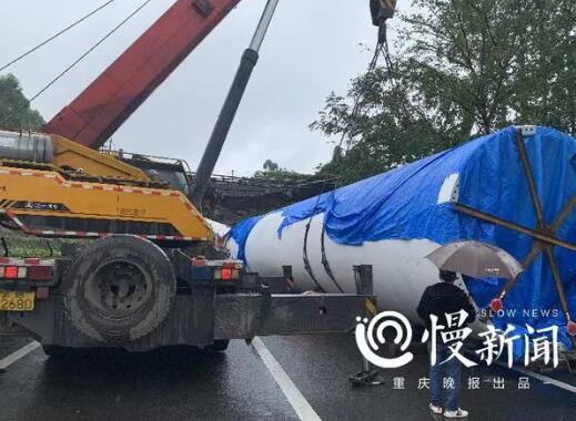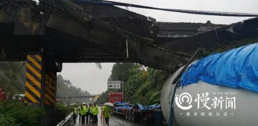 2020年10月15日,一輛大件運輸車在行經(jīng)G50滬渝高速公路出城方向渝北段內(nèi)1730KM(桂灣段)時,與上跨滬渝高速的車行天橋發(fā)生擦掛,導(dǎo)致車行天橋一邊梁脫落,這一“大件車撞壞橋梁”的事件也引發(fā)了行業(yè)熱議。