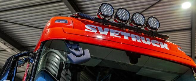 在大件包頂部,車輛也安裝了高亮LED燈,并附加了兩個(gè)沃爾沃原車尾燈,增強(qiáng)可見度和安全性。在條形LED燈的上方,SVETRUCK字樣被鏤空,視覺(jué)效果極佳。