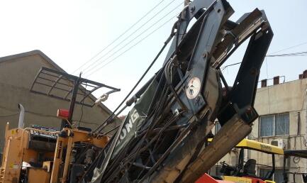 銑刨機吊起高過板車平板高度,吊車不動板車向后倒,使銑刨機落至板車平板中間,不得偏向一側(cè)。