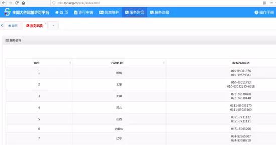 1)企業(yè)用戶成功注冊后,登錄網(wǎng)站,此時用戶尚不能進行業(yè)務申請。應電話聯(lián)系企業(yè)注冊省的協(xié)調人員申請核查企業(yè)資質,點擊頁眉處的【服務咨詢】,查詢本省協(xié)調員電話聯(lián)系。