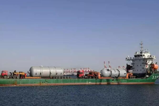 該公司結合駁船運輸及作業(yè)特點,利用牽引車將平板車上的3件設備從駁船上卸至碼頭,然后將另外2件設備移至駁船上,一次性成功作業(yè)5件化工反應器罐體,這是營口港區(qū)首次實現(xiàn)大件設備“滾裝滾卸”,也創(chuàng)下了單船裝卸大件數(shù)量新紀錄。