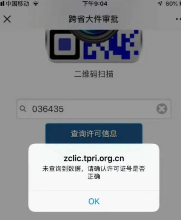 通過(guò)“跨省大件審批”公眾號(hào)掃碼驗(yàn)證功能,掃描假證二維碼失效。但是用微信“掃一掃”功能,能掃出相關(guān)信息,具有一定的迷惑性。