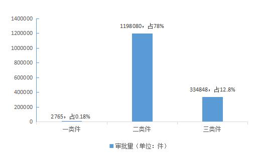 圖 2021年全國一、二、三類大件運輸辦結(jié)量及占比