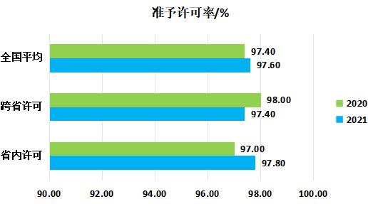 2021年全國大件運輸許可準(zhǔn)予許可率達97.6%,較2020年提高0.2個百分點。