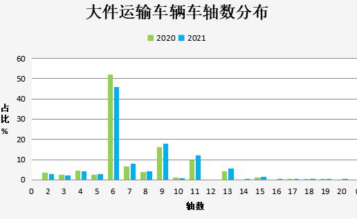 圖 2021年和2020年大件運輸車輛車軸數(shù)分布對比