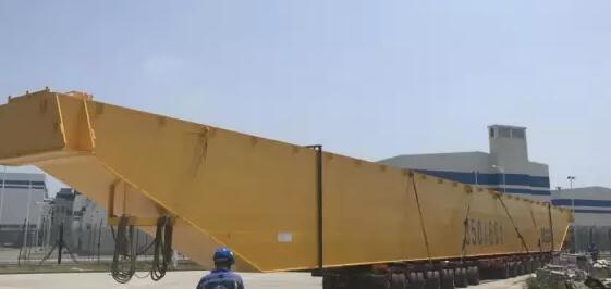 2017年8月5日上午11點(diǎn)45分,承載著350t行車主梁的液壓軸線車緩緩?fù)O拢僮魅藛T憑借精湛的駕駛技術(shù)實(shí)現(xiàn)車輛一次準(zhǔn)確到位,使設(shè)備重心與吊車的吊鉤幾乎保持在同一條垂直線上。隨著主梁緩緩吊起,車輛駛出了吊裝區(qū)域,標(biāo)志著福清核電5號(hào)機(jī)組350t行車主梁的運(yùn)輸任務(wù)圓滿結(jié)束。